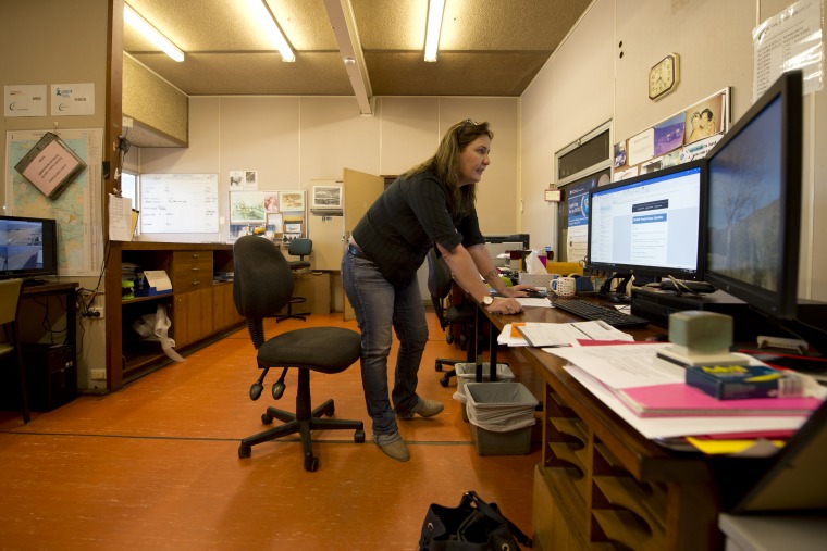BA2840/341: Jill Taylor works in the office at the Port of Wyndham, 24 August 2017