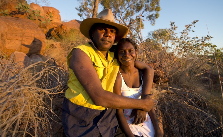 BA2840/364: Marcus Hall and his partner Sherita Liddy at Kellys Knob, Kununurra, 2 August 2017
