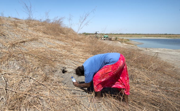 BA2840/415: Jodie Hall checking a hole for goannas, Ord Valley, 29 July 2017