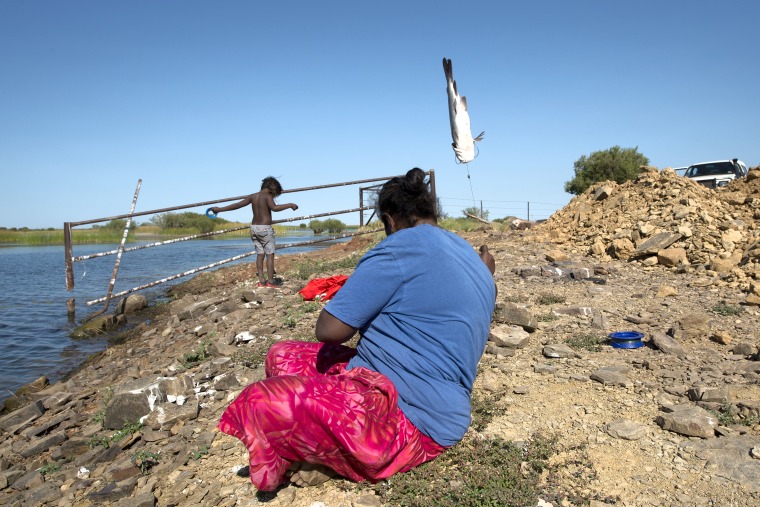 BA2840/416: Jodie Hall killing a newly caught fish, Ord Valley, 29 July 2017