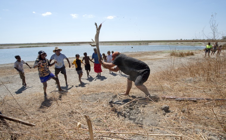 BA2840/420: Angus Griggs killing a goanna in the Ord Valley, 29 July 2017