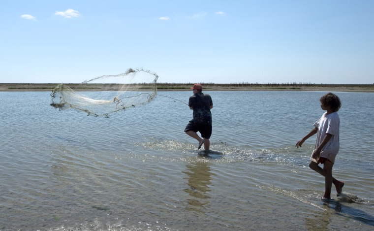 BA2840/422: Angus Griggs casting a net in the Ord River Dam to catch bait fish, 29 July 2017