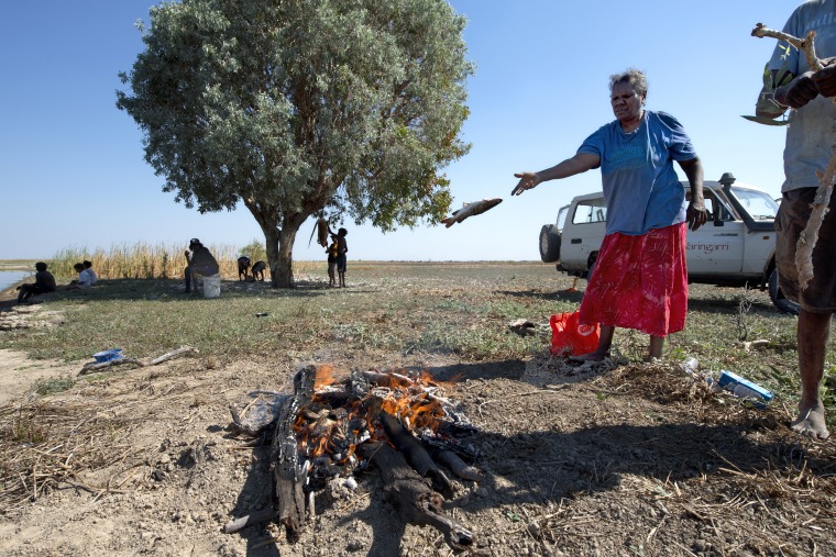 BA2840/426: Jodie Hall cooking catfish in the Ord Valley, 29 July 2017