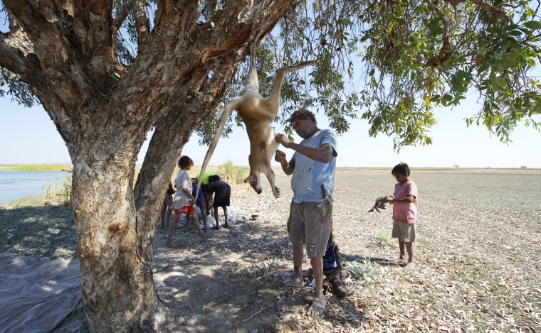 BA2840/429: Marcus Hall cleaning a kangaroo for dinner, Ord Valley, 29 July 2017
