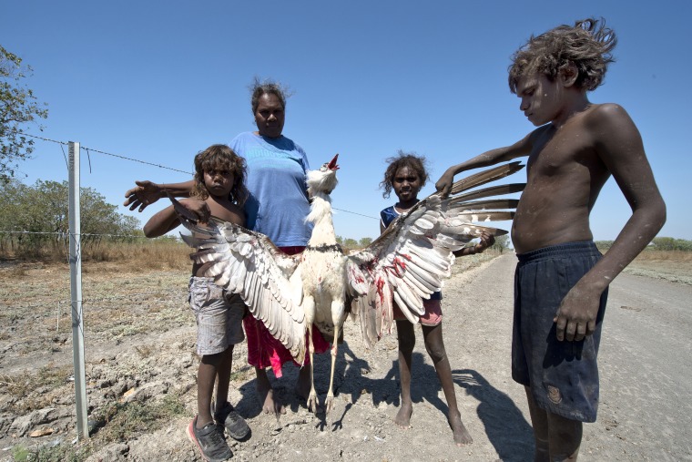 BA2840/434: Jodie Hall and family display a bush turkey they shot for dinner, Ord Valley, 29 July 2017