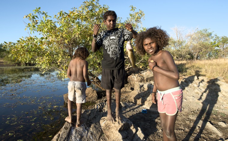BA2840/411: Davis Hall with a rock cod caught for breakfast in the Ord Valley, 29 July 2017