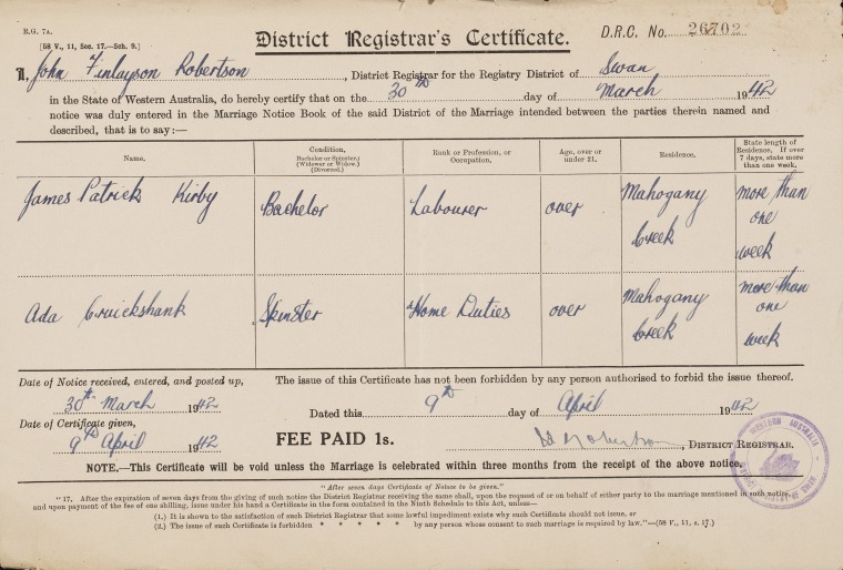 ACC 9782AD/3: Midland Parish Church of the Ascension marriage register, 1939-1942