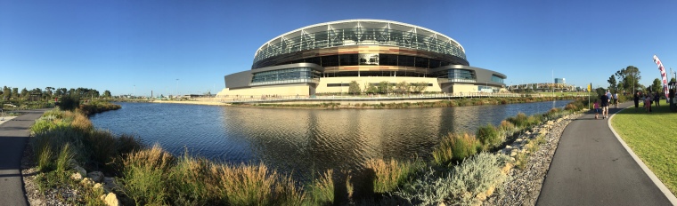 BA2944/1: Panorama of Optus Stadium on the River Swan, western facade.