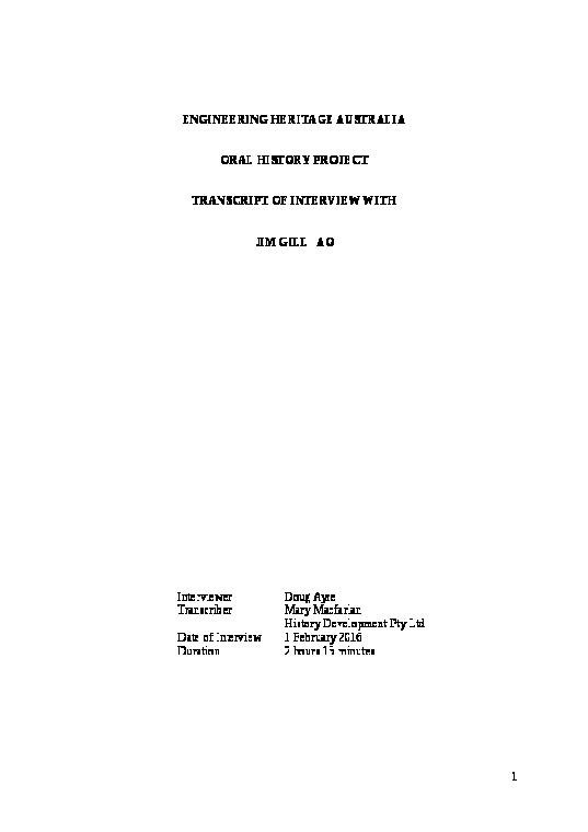 OH4290/1:Transcript. Interview with James (Jim) Ian Gill in 2016 by Doug Ayre.