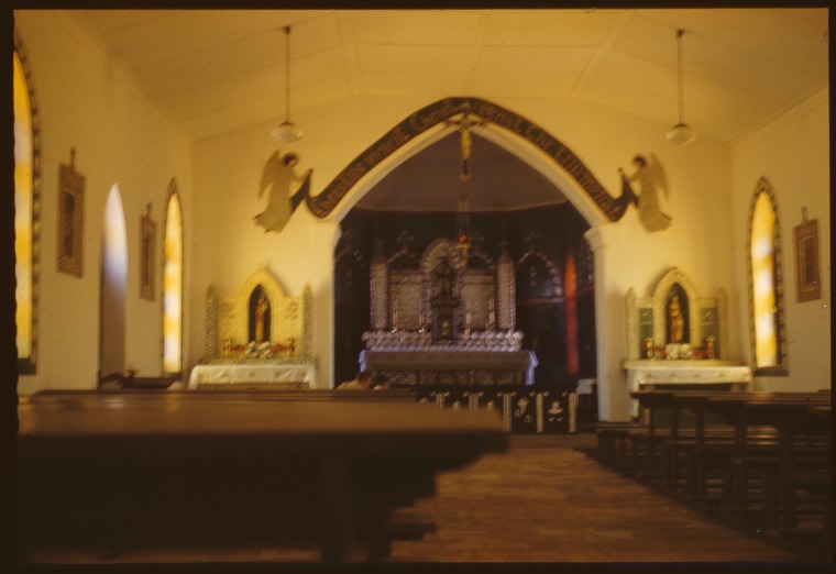 300649PD: Interior of the Sacred Heart Catholic Church, Beagle Bay, Wesern Australia, ca. 1956.