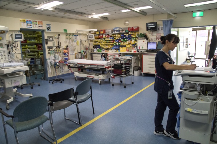 BA2493/1567: Resuscitation room in the Emergency Department, Princess Margaret Hospital for Children, 27 April 2018. Note the unit for babies at left