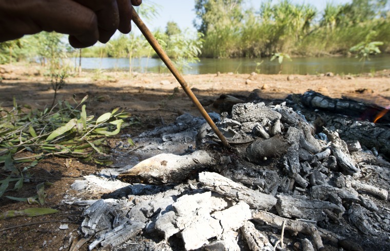 BA2840/574: Roasting a turtle at Fords Beach, Kununurra, 18 April 2018