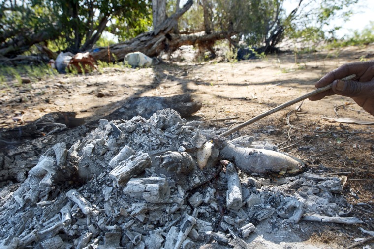 BA2840/573: Roasting a turtle at Fords Beach, Kununurra, 18 April 2018