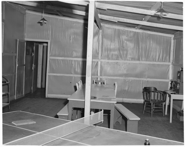 221733PD: North side interior of the lounge in the dormitories at the Western Australian Petroleum Pty Ltd camp at Learmonth, Western Australia, 1952.