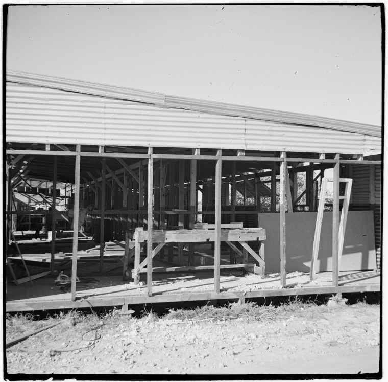 363678PD: West end, south wing of the Western Australian Petroleum Learmonth camp undergoing remodelling, Western Australia, 1952.