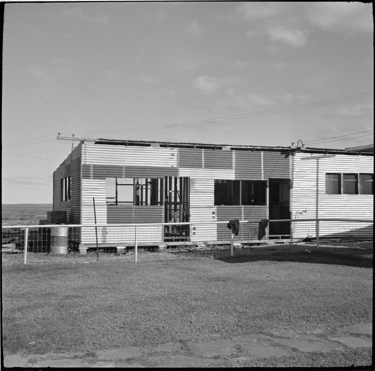 363679PD: Ladies guest room of the Western Australian Petroleum Learmonth camp undergoing remodelling, Western Australia, 1952.