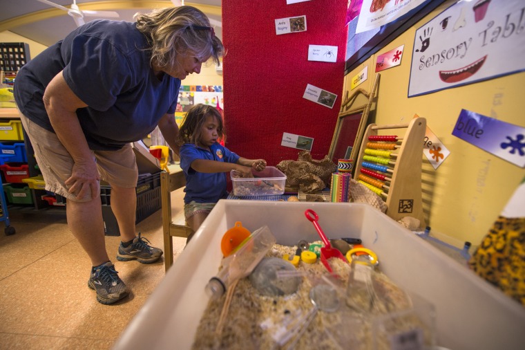 BA2840/767: Amanda Rowe at the interactive experience table with four year old Loma Calwyn, 31 August 2018