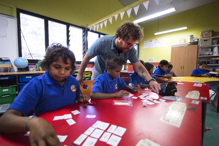 BA2840/773: Teacher Louis Gill teaches middle primary years 3-4 and 5-6 to spell by matching pictures to words, 31 August 2018