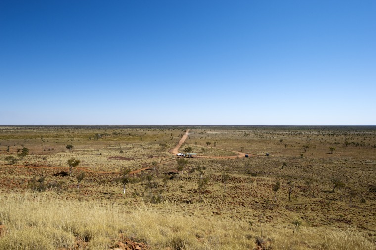 BA2840/900: Looking back to the parking area from the rim of the Wolfe Creek Meteorite Crater, August 2018