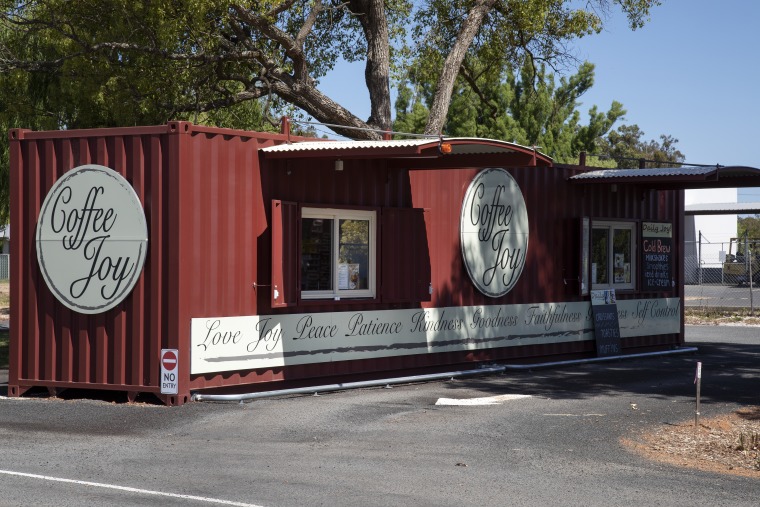 BA2493/1888: Coffee Joy cafe built using a sea container, 13 South Western Highway, Boyanup, 12 December 2018