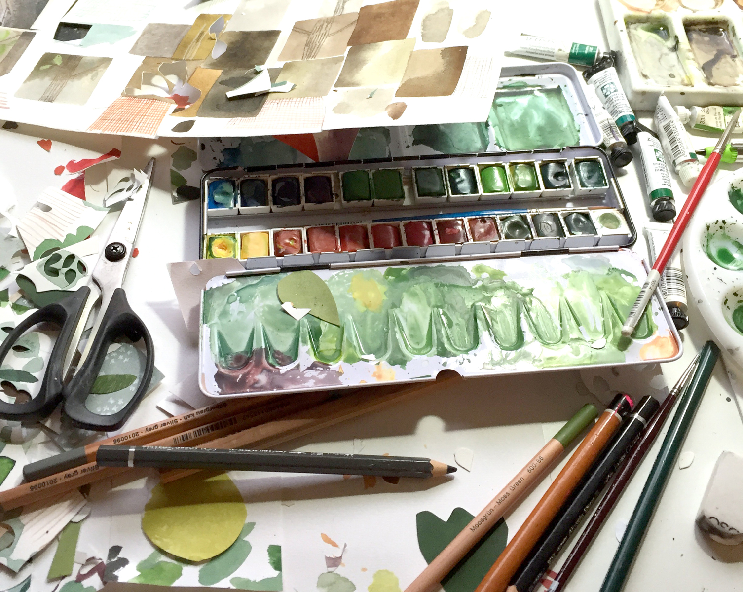PWC/281/8/5D: Photograph. Paint and tools Anna had used for the book, Florette.