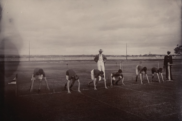 BA1200/120: Start of the 100 yard race for under 16 year old boys, Perth, ca.1905