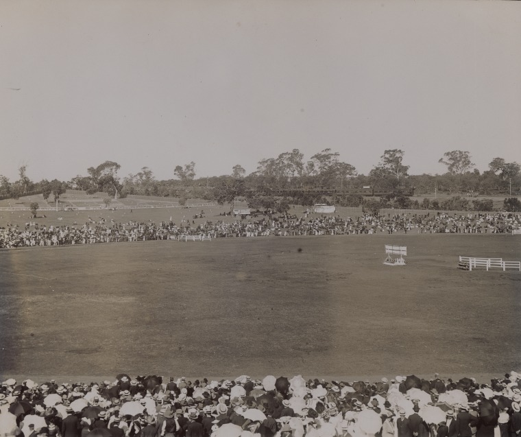BA1200/144: The Show Grounds and the 35,000 attendees on Wednesday, the big day of the Perth Royal Show, 31 October 1906. Middle section of a panorama