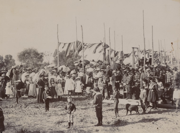 BA1200/168: Crowd at the laying the foundation stone of the Chung Wah Association building in James Street, Perth, 12 October 1910.