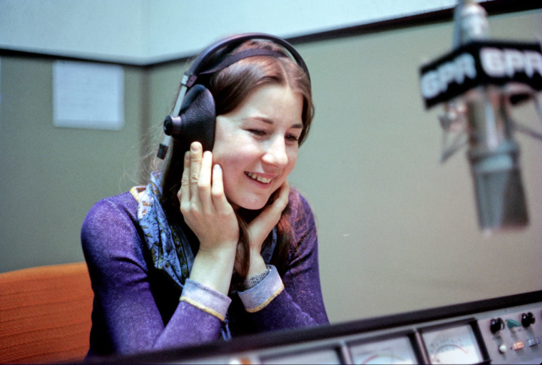 BA3094/27: Singer Judith Durham being interviewed by Garry Meadows in the studio at 6PR, Perth, Western Australia, 1972.
