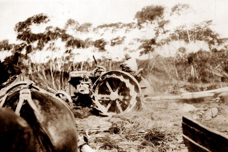 BA3101/6: Rolling scrub on the Hancock farm at Babakin, 1928