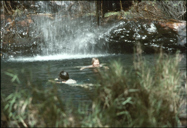 BA2947/629: Women from Sam and Rosita Lovell's Kimberley Safari Tours swimming at Prize Falls, Kimberley, Western Australia, August 1983.