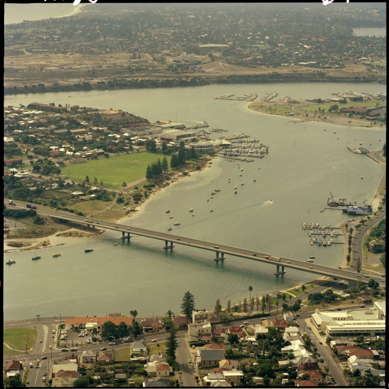 390572PD: Across Stirling Bridge to Pier 21 Marina at Point Direction, North Fremantle, 28 April 1989