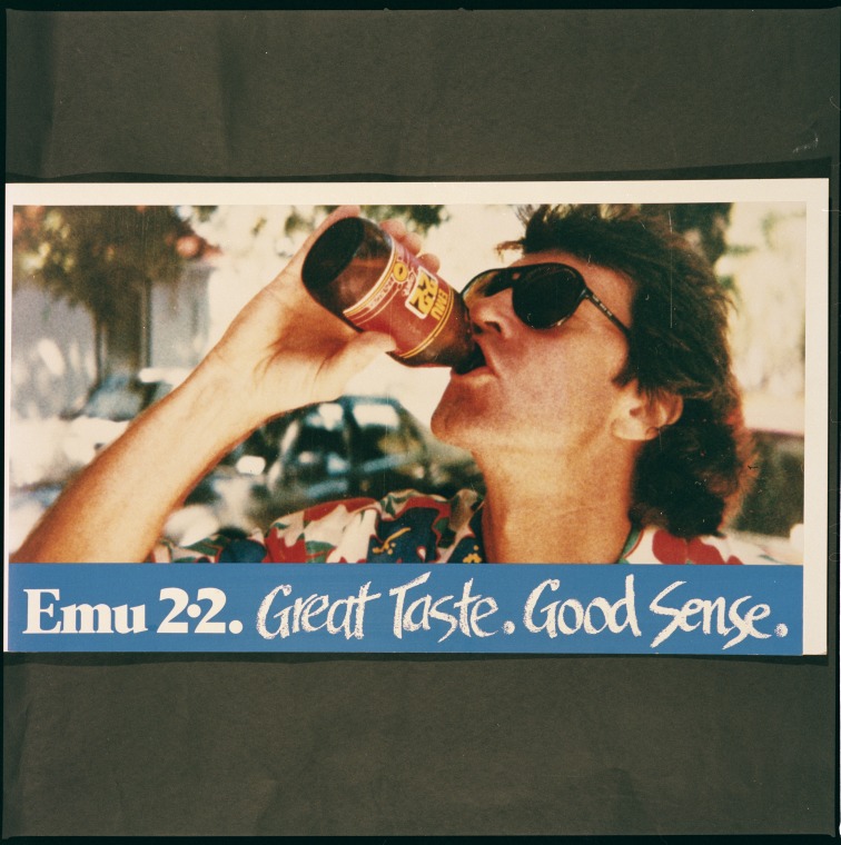 390794PD: Advertising poster for Emu 2.2 beer, 1990