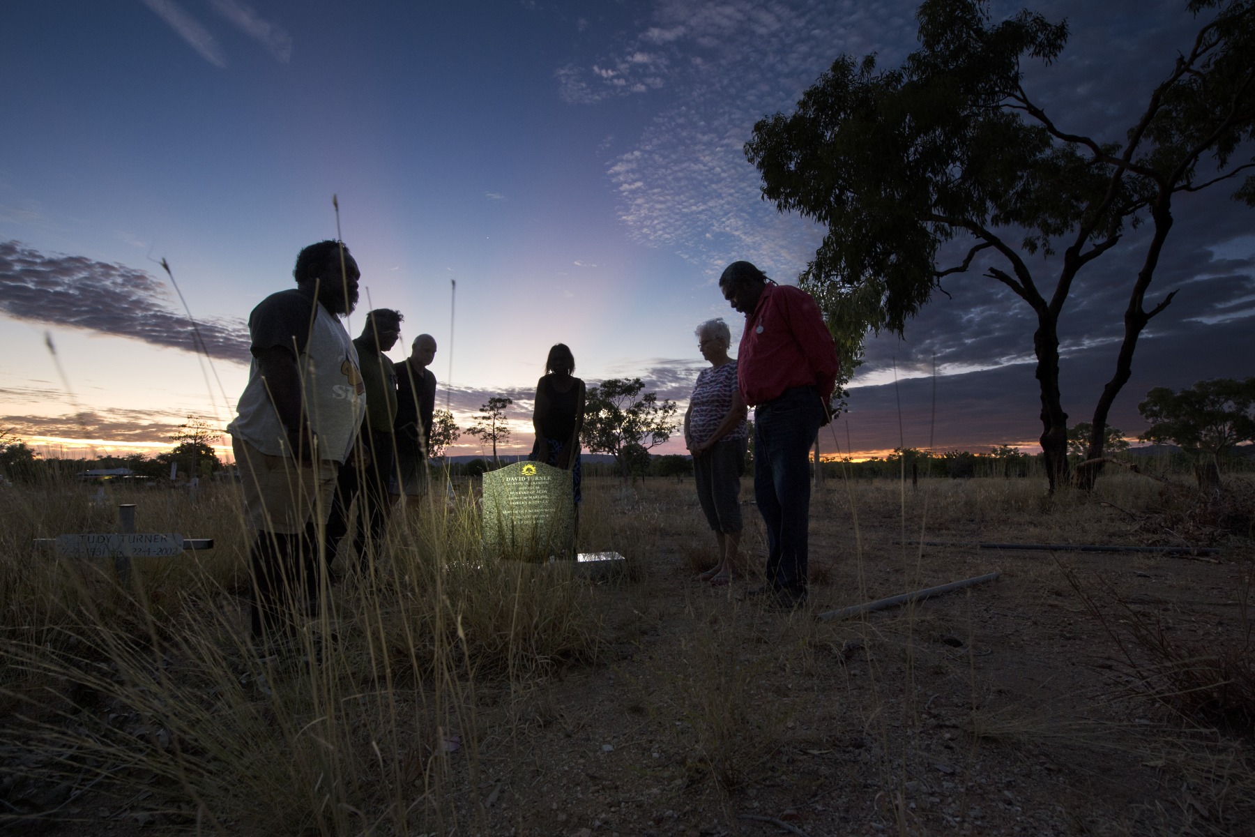 BA2840/1075: Commemorating Anzac Day 2019 at the grave of David Turner, an Aboriginal man who served in WWII. Behind the tombstone is his daughter Marlene Turner