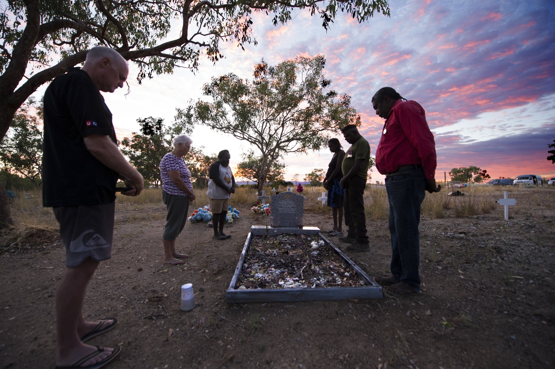 BA2840/1076: Commemorating Anzac Day 2019 at the grave of Hector Jandany (1929-2006). Note the misspelling of the name on the gravestone