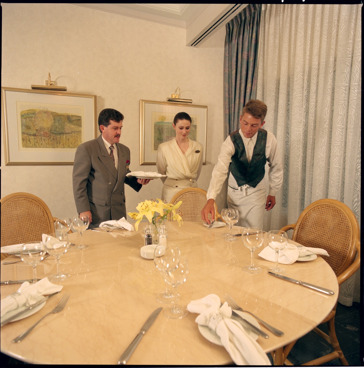 390922PD: Training waiters at the Hyatt Regency Perth Hotel, 10 April 1991