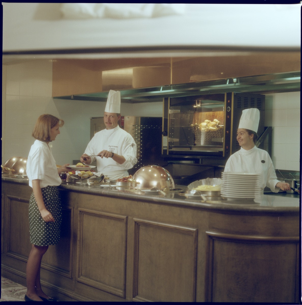 390912PD: Staff in the cafe at the Hyatt Regency Perth Hotel, 10 April 1991
