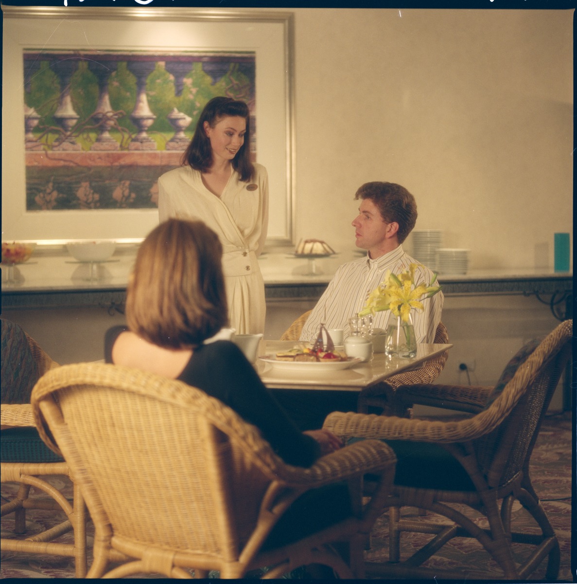 390917PD: A waitress in the cafe at the Hyatt Regency Perth Hotel, 10 April 1991