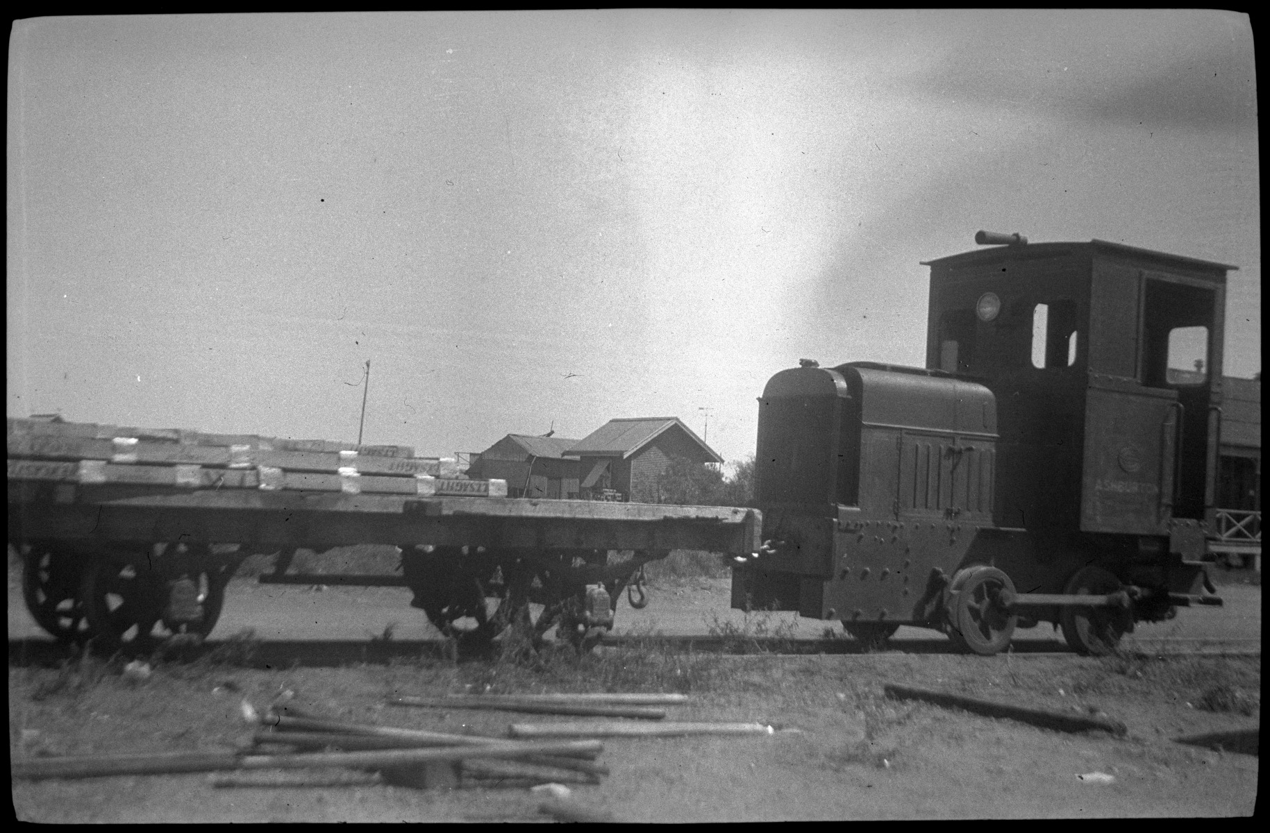 179031PD: Small railroad and train at Onlsow port, Western Australia, ca. 1933.