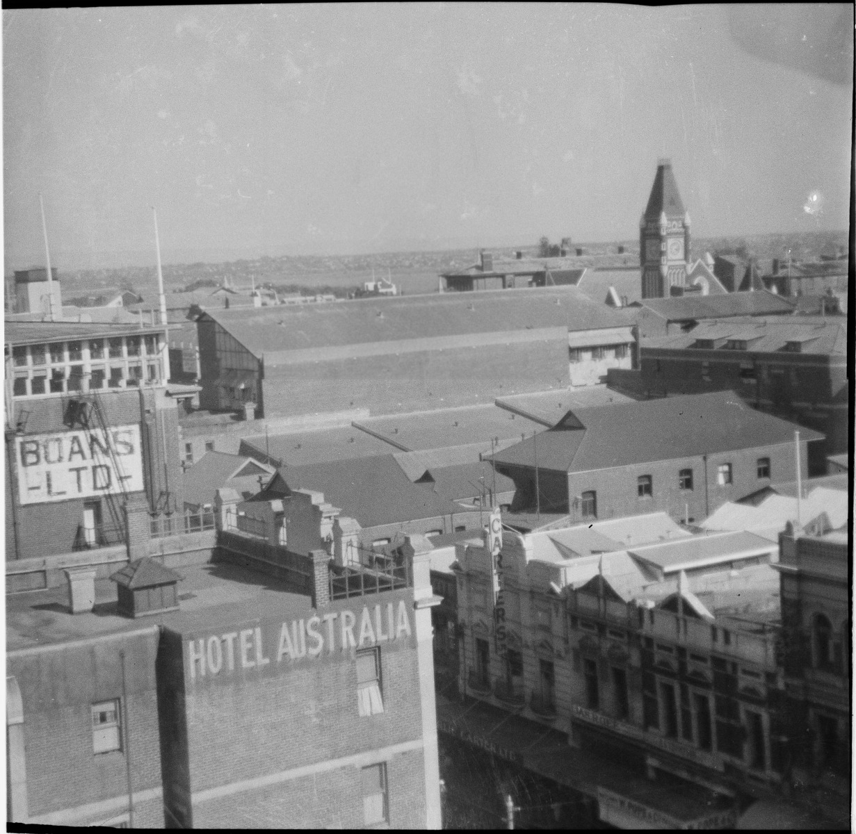 364425PD: Corner of Murray Street and Forrest Place viewed from the Commonwealth Bank building, Perth, Western Australia, 1950.