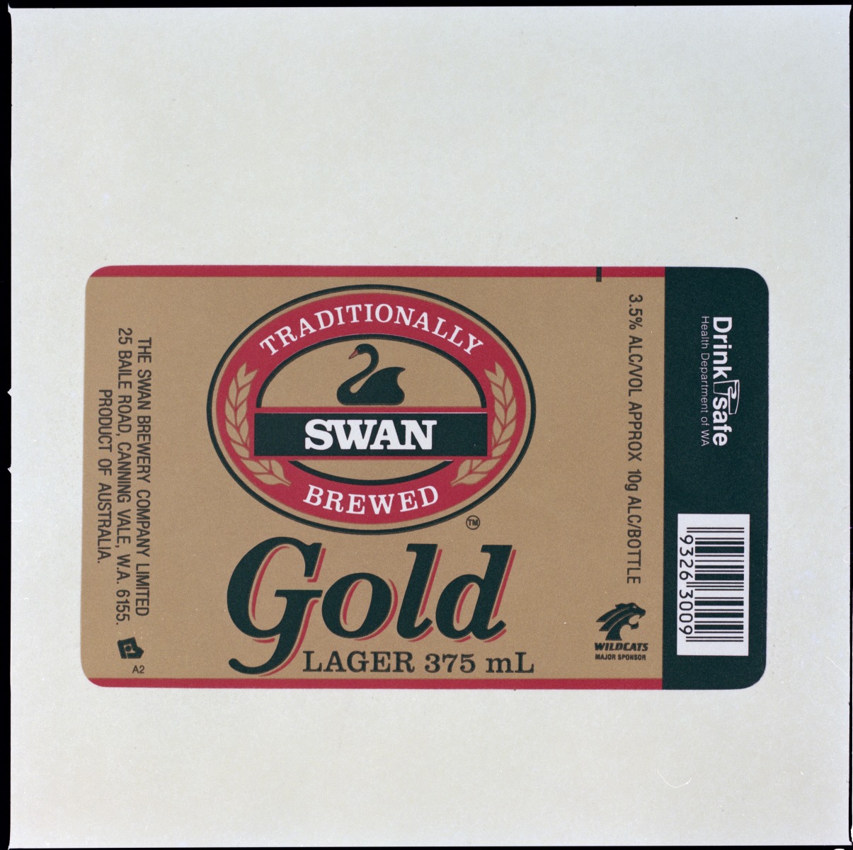 391001PD: Swan Gold Lager beer bottle label, 1992