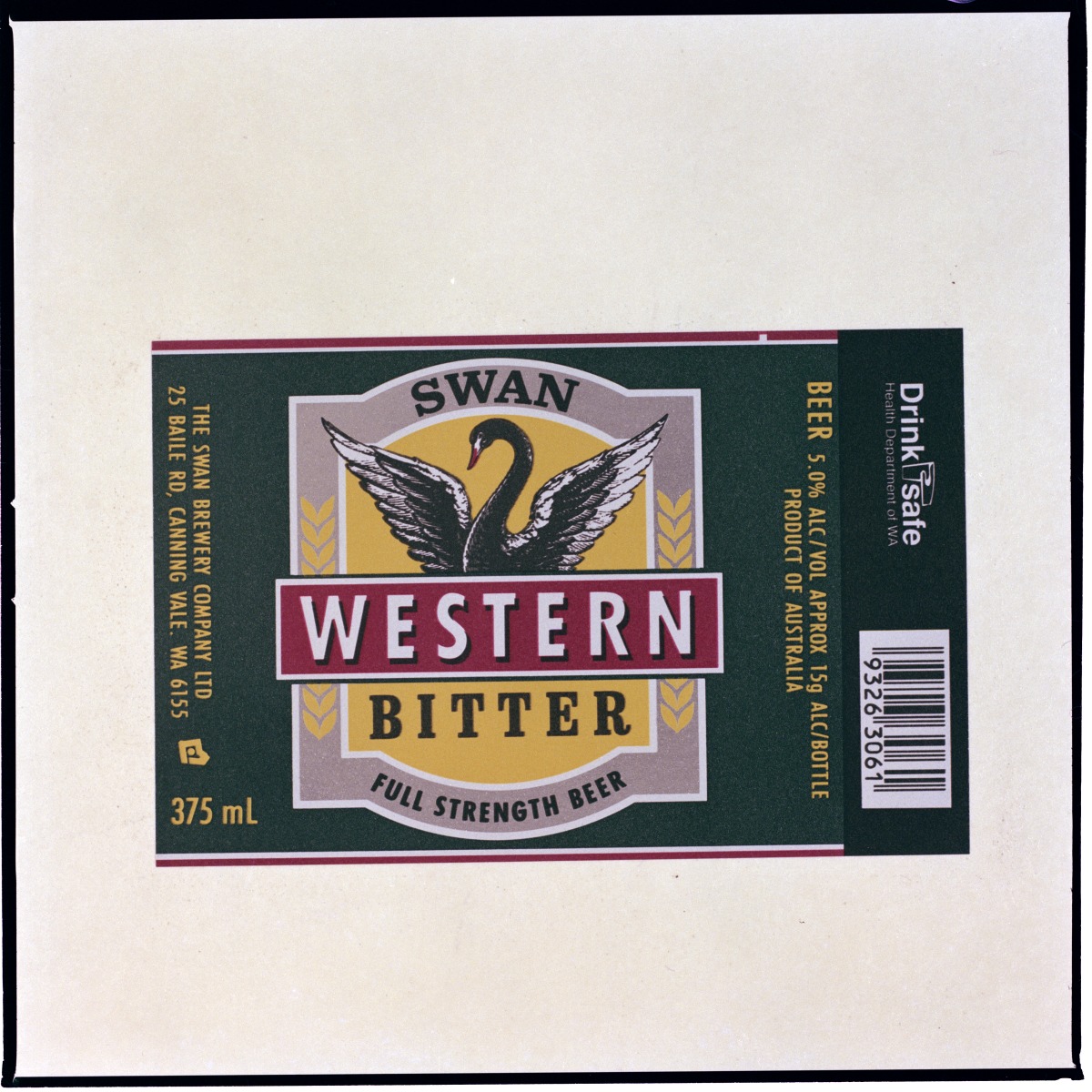 391003PD: Swan Western Bitter beer bottle label, 1992