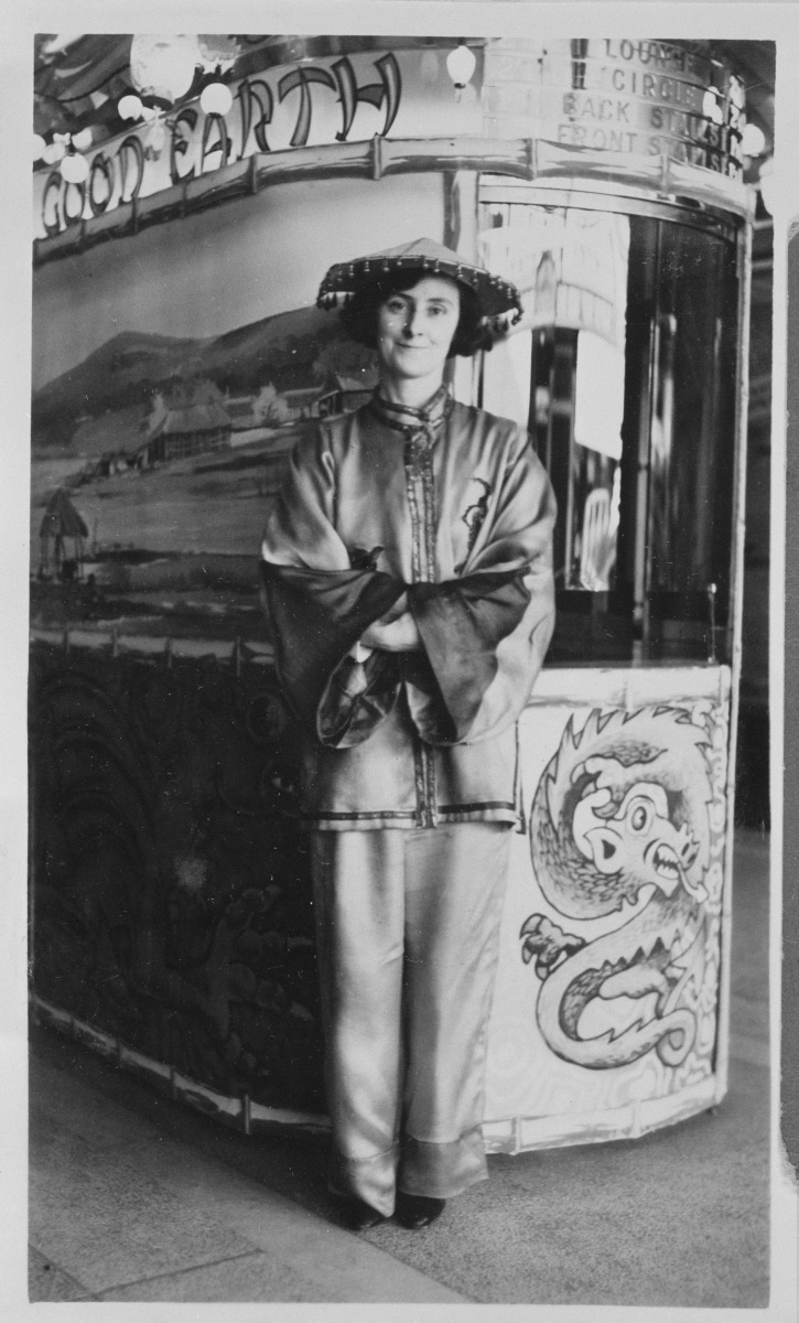 BA3118/3: Ticket seller in costume for the film The good earth at the Piccadilly Theatre, Perth, Western Australia, 1938.