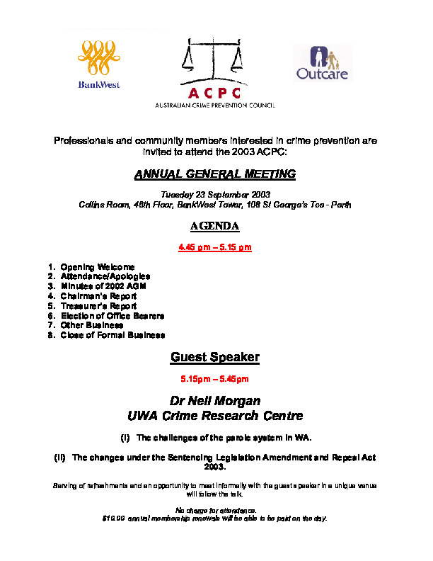 ACC 10459AD25 Agenda - ACPCWA AGM 23 September 2003