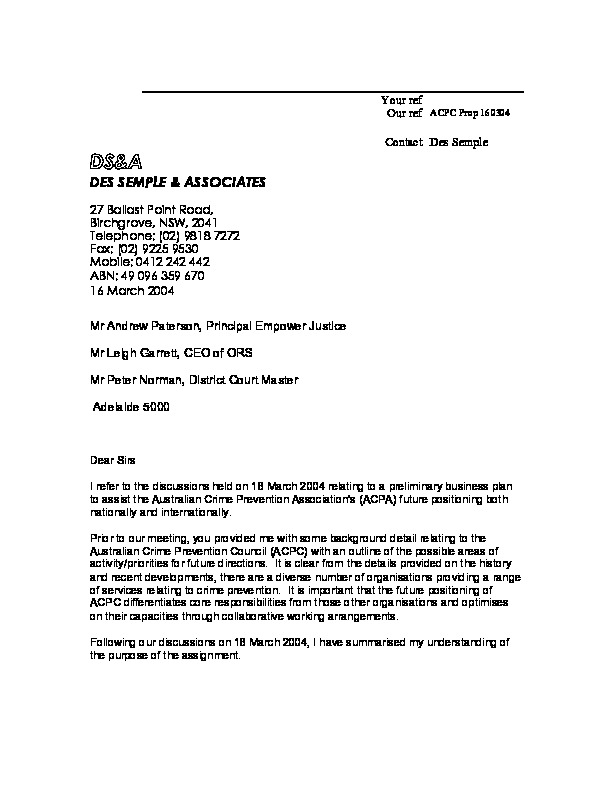 ACC 10459AD91 Letter from Des Semple Preliminary Strategic Plan