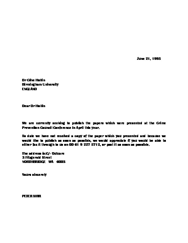 ACC 10459AD108 Letter to Dr Hollin requesting conference paper