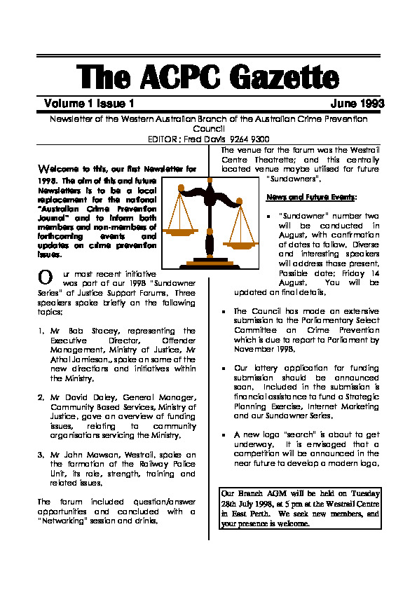 ACC 10459AD115 ACPCWA Gazette Volume 1 issue 1