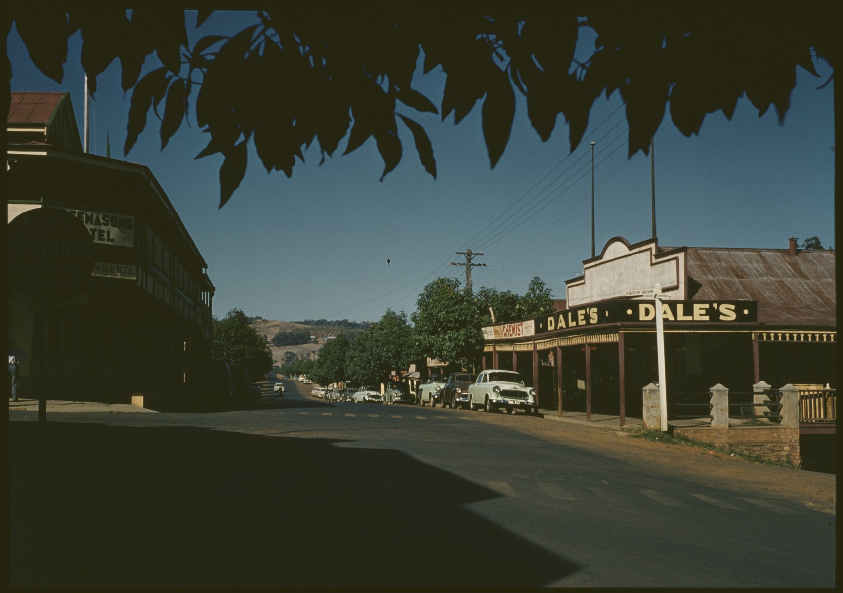 196055PD: Hampton Street looking south at the corner of Steere Street, Bridgetown, Western Australia, ca. 1957.