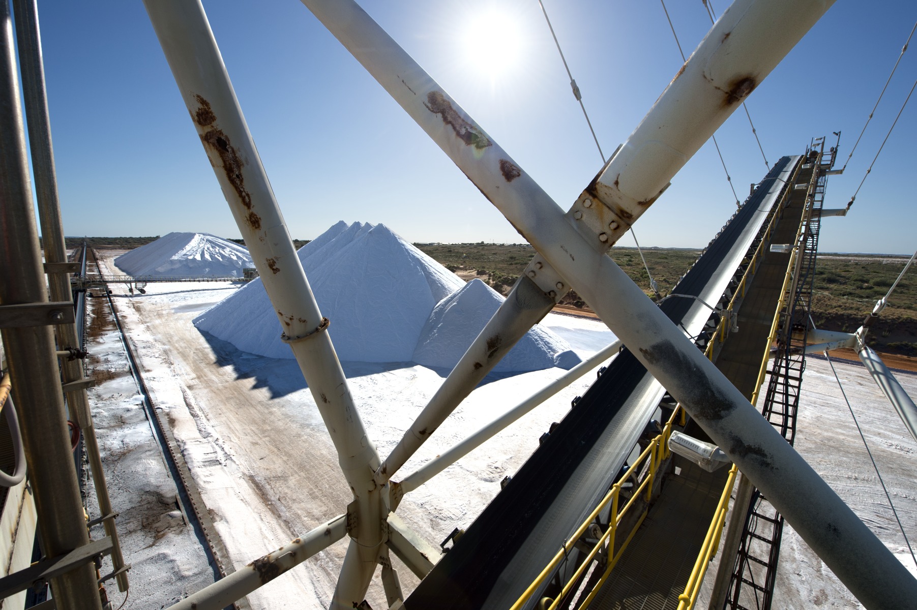 BA2840/1472: The Onslow Salt stockpile from the top of the stacker, August 2019