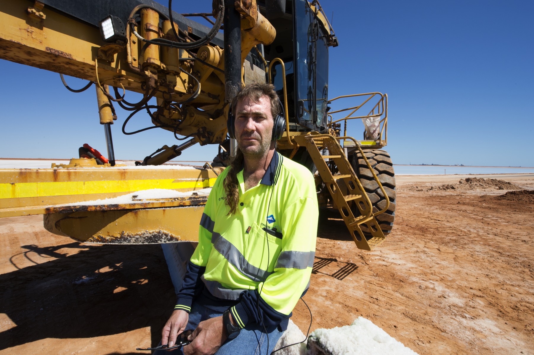 BA2840/1482: Onslow local Cameron Elliott working at Onslow Salt, August 2019